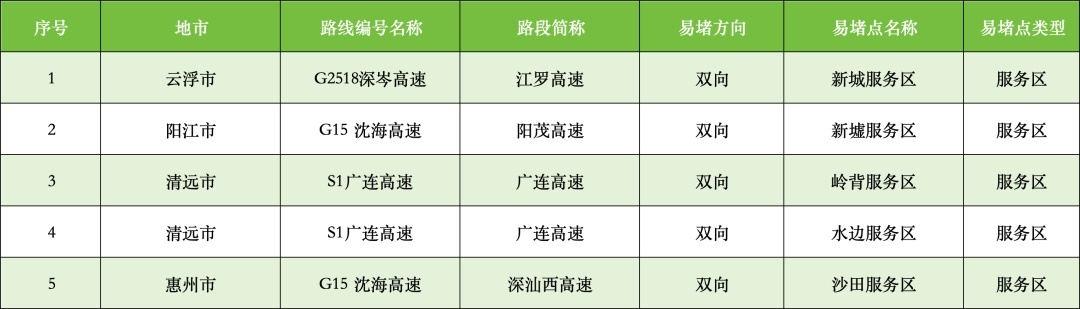 省内繁忙高速公路服务区5处