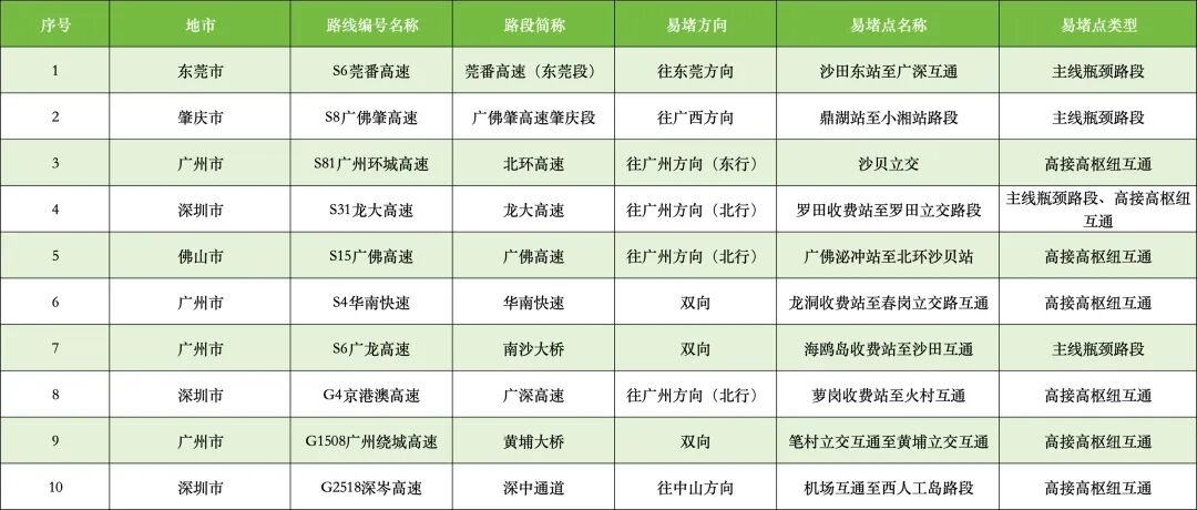 省内繁忙高速公路10处